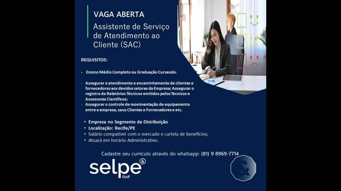 ASSISTENTE DE SERVIÇO DE ATENDIMENTO AO CLIENTE (SAC)